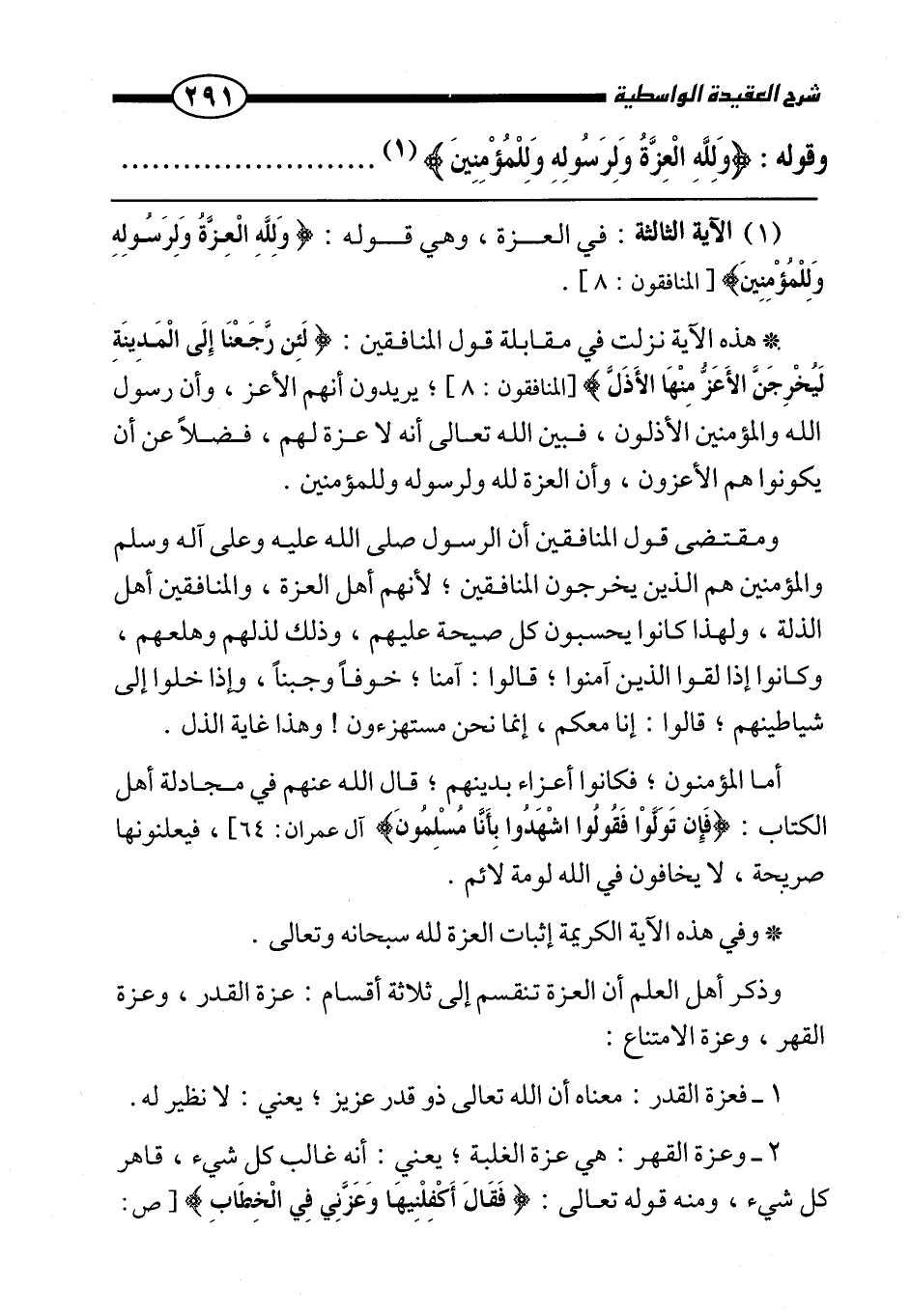 وفي هذه الآية الكريمة إثبات العزة لله سبحانه وتعالى.