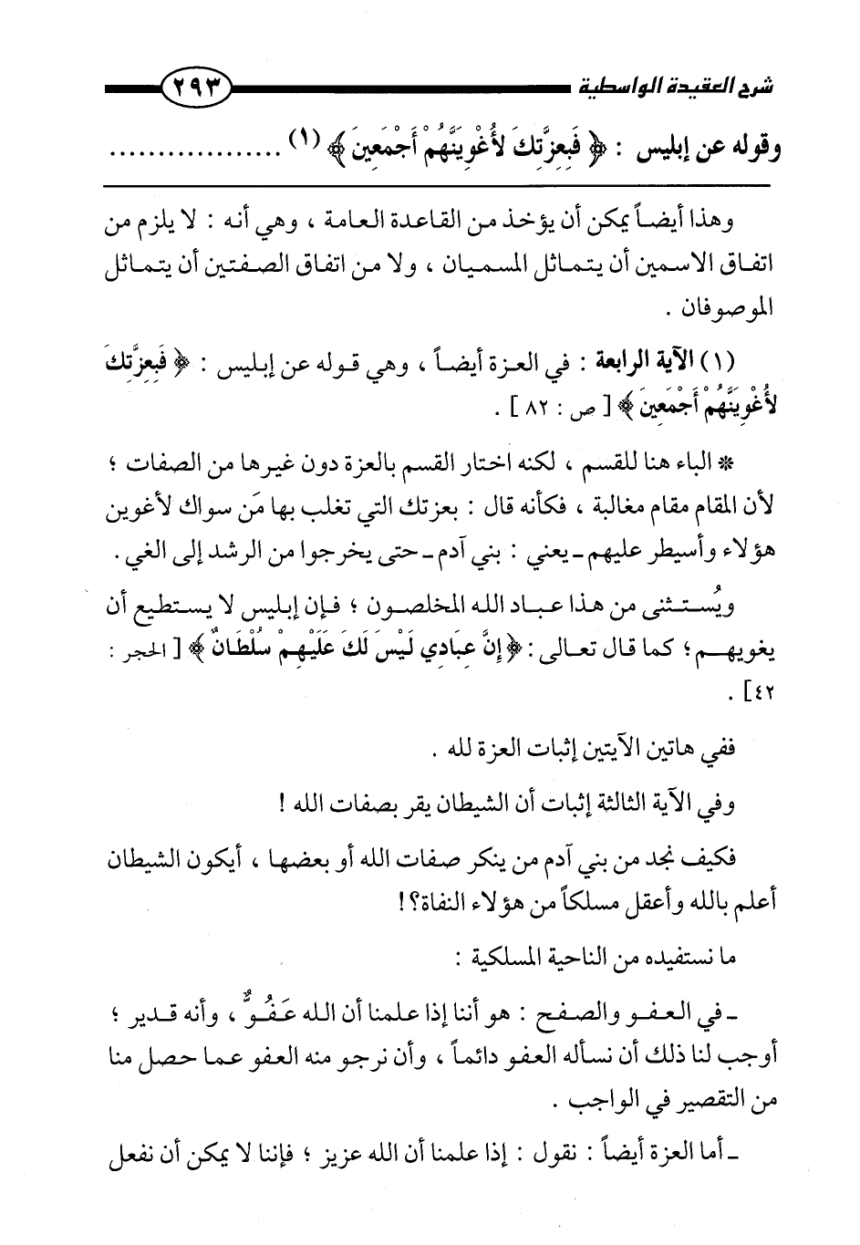وقوله عن إبليس: {فَبِعِزَّتِكَ لَأُغْوِيَنَّهُمْ أَجْمَعِينَ} .