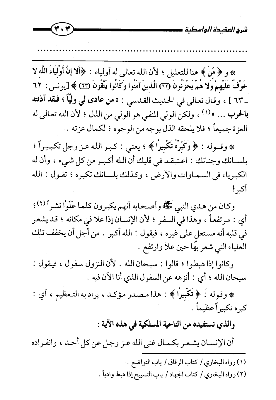 وكان من هدي النبي صَلَّى اللَّهُ عَلَيْهِ وَسَلَّمَ وأصحابه أنهم يكبرون كلما علوا نشرا، أي: مرتفعا، وهذا في السفر؛ لأن الإنسان إذا علا في مكانه، قد يشعر في قلبه أنه مستعل على غيره، فيقول: الله أكبر. من أجل أن يخفف تلك العلياء التي شعر بها حين علا وارتفع.