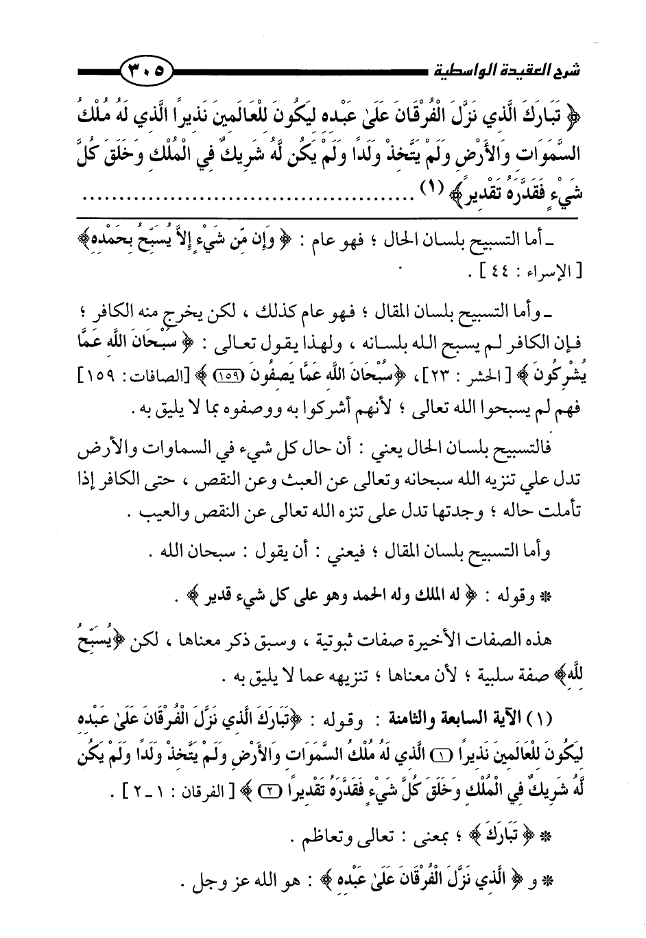 {تَبَارَكَ الَّذِي نَزَّلَ الْفُرْقَانَ عَلَى عَبْدِهِ لِيَكُونَ لِلْعَالَمِينَ نَذِيرًا الَّذِي لَهُ مُلْكُ السَّمَاوَاتِ وَالْأَرْضِ وَلَمْ يَتَّخِذْ وَلَدًا وَلَمْ يَكُنْ لَهُ شَرِيكٌ فِي الْمُلْكِ وَخَلَقَ كُلَّ شَيْءٍ فَقَدَّرَهُ تَقْدِيرًا}