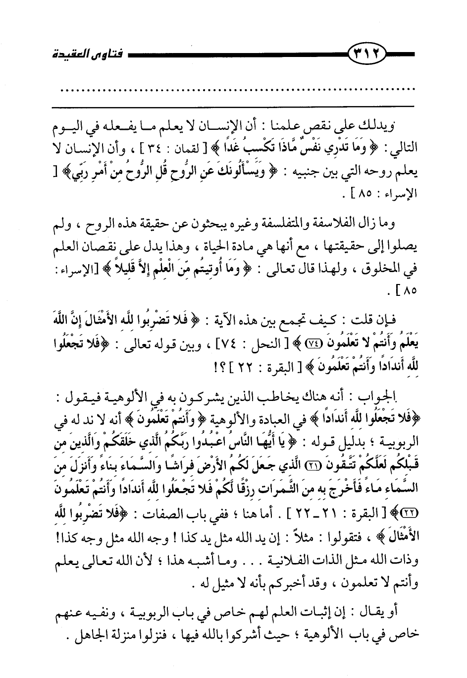 ويدلك على نقص علمنا: أن الإنسان لا يعلم ما يفعله في اليوم التالي: {وَمَا تَدْرِي نَفْسٌ مَاذَا تَكْسِبُ غَدًا} [لقمان: 34] ، وأن الإنسان لا يعلم روحه التي بين جنبيه: {وَيَسْأَلُونَكَ عَنِ الرُّوحِ قُلِ الرُّوحُ مِنْ أَمْرِ رَبِّي} [الإسراء: 85] .