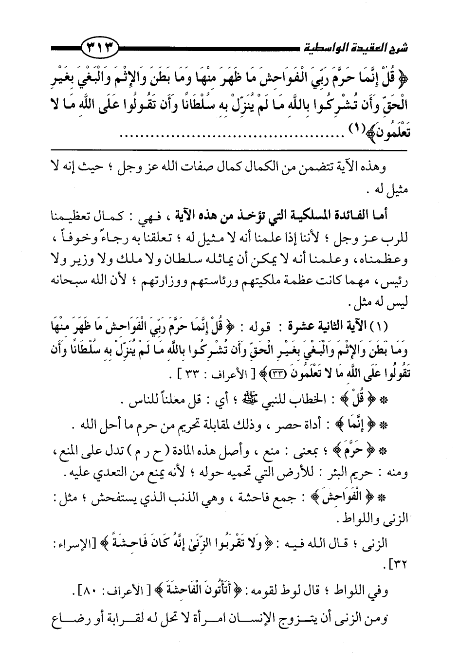 {قُلْ إِنَّمَا حَرَّمَ رَبِّيَ الْفَوَاحِشَ مَا ظَهَرَ مِنْهَا وَمَا بَطَنَ وَالْإِثْمَ وَالْبَغْيَ بِغَيْرِ الْحَقِّ وَأَنْ تُشْرِكُوا بِاللَّهِ مَا لَمْ يُنَزِّلْ بِهِ سُلْطَانًا وَأَنْ تَقُولُوا عَلَى اللَّهِ مَا لَا تَعْلَمُونَ}