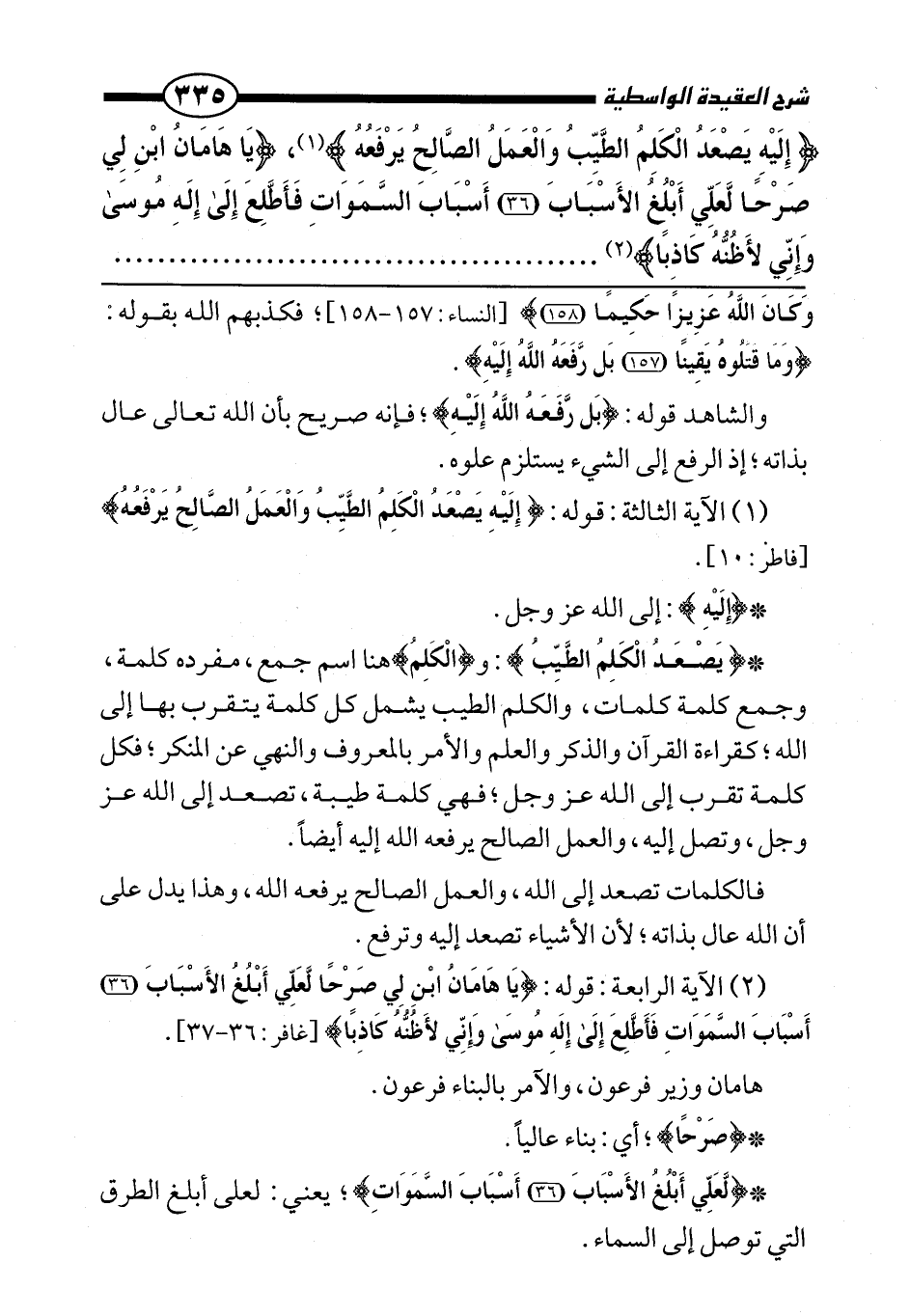 {إِلَيْهِ يَصْعَدُ الْكَلِمُ الطَّيِّبُ وَالْعَمَلُ الصَّالِحُ يَرْفَعُهُ} {يَاهَامَانُ ابْنِ لِي صَرْحًا لَعَلِّي أَبْلُغُ الْأَسْبَابَ أَسْبَابَ السَّمَاوَاتِ فَأَطَّلِعَ إِلَى إِلَهِ مُوسَى وَإِنِّي لَأَظُنُّهُ كَاذِبًا}