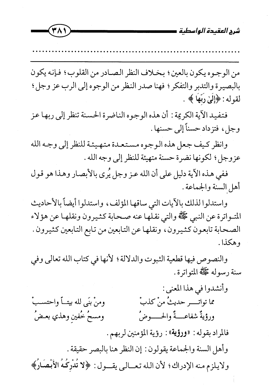 ففي هذه الآية دليل على أن الله عز وجل يُرى بالأبصار وهذا هو قول أهل السنة والجماعة.