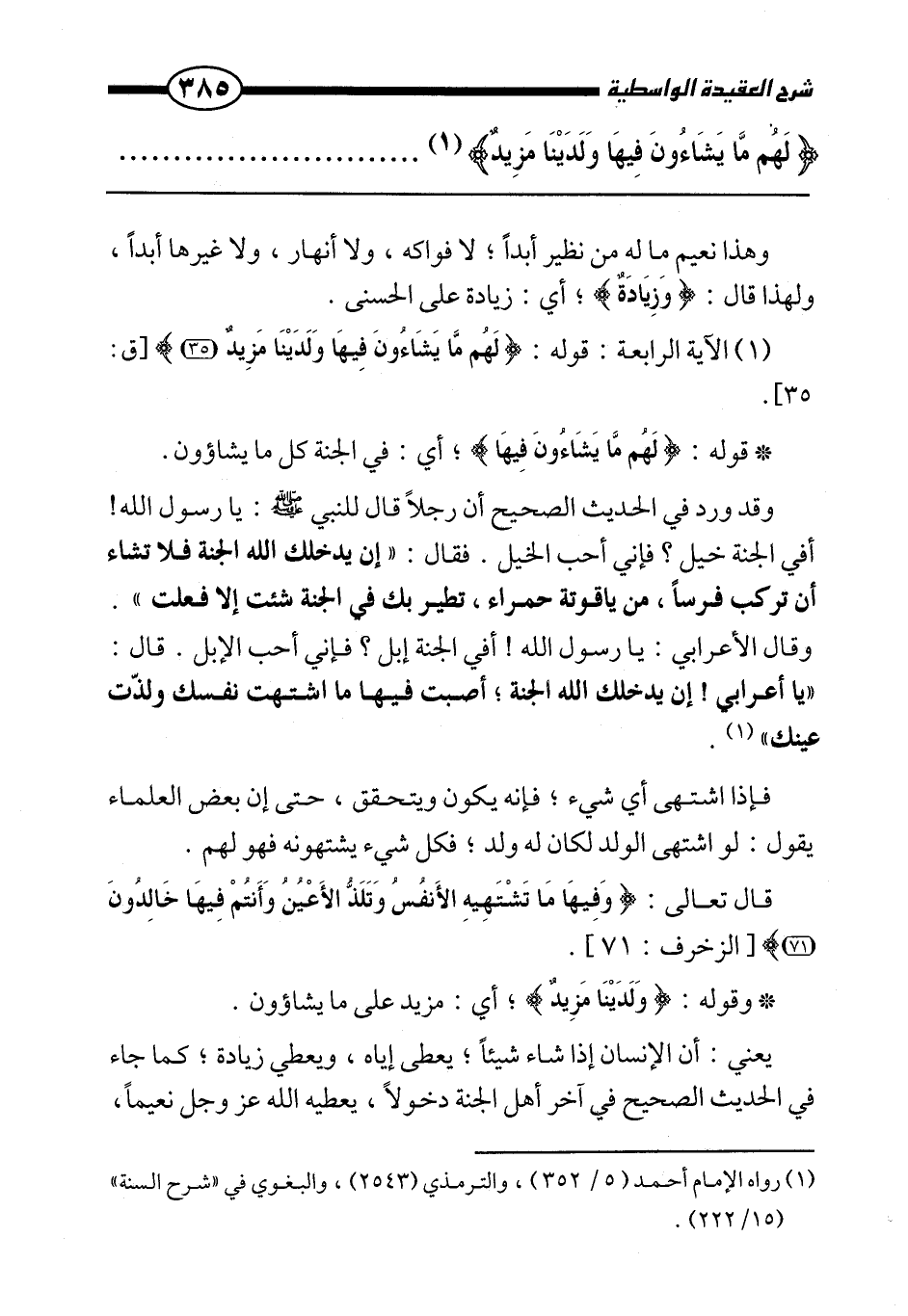 الآية الرابعة: قوله: {لَهُمْ مَا يَشَاءُونَ فِيهَا وَلَدَيْنَا مَزِيدٌ} [ق: 35] .
