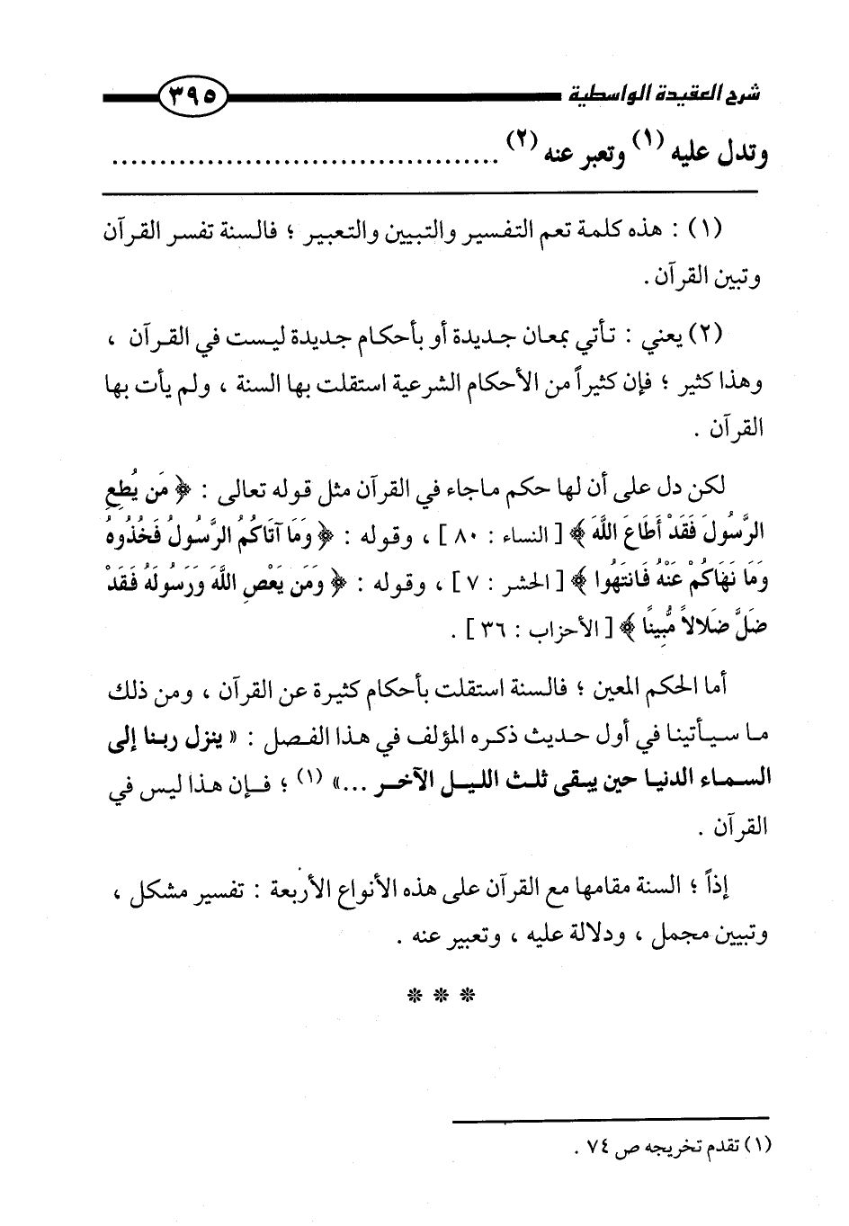 إذًا السنة مقامها مع القرآن على هذه الأنواع الأربعة: تفسير مشكل، وتبيين مجمل، ودلالة عليه، وتعبير عنه.