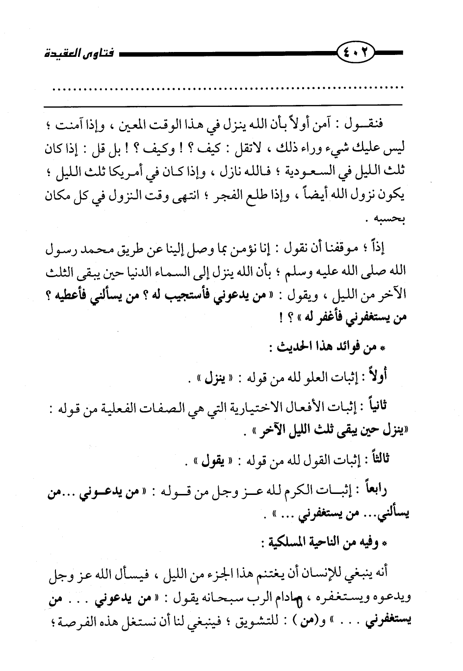ثانيا: إثبات الأفعال الاختيارية التي هي الصفات الفعلية من قوله: «ينزل حين يبقى ثلث الليل الآخر» .