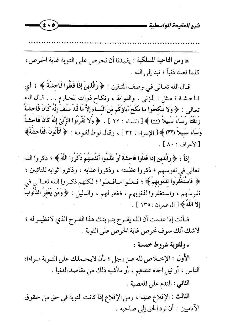 وللتوبة شروط خمسة:
