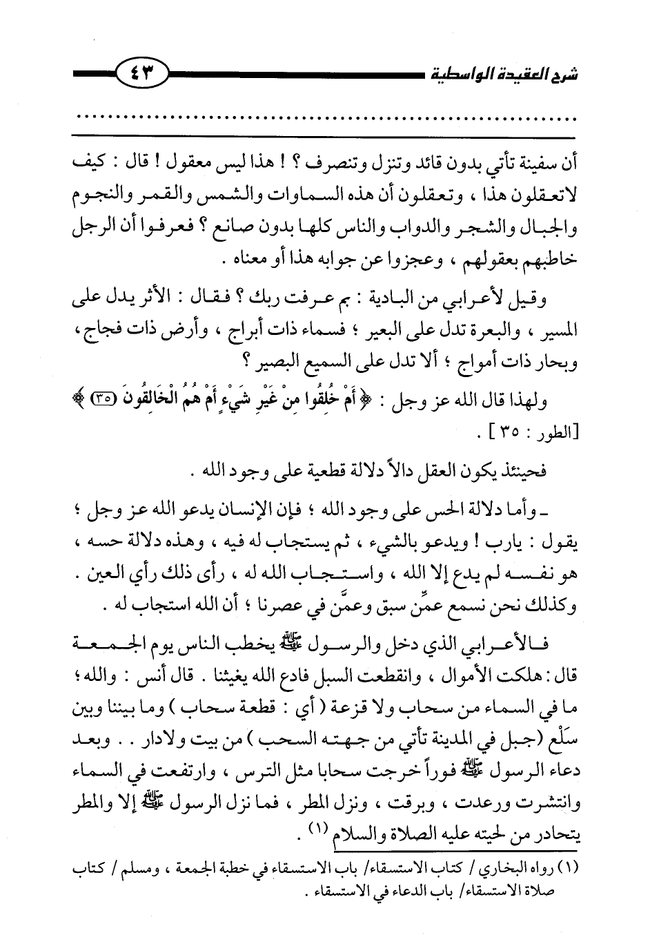 أن سفينة تأتي بدون قائد وتنزل وتنصرف؟ ! هذا ليس معقولًا! قال: كيف لا تعقلون هذا، وتعقلون أن هذه السماوات والشمس والقمر والنجوم والجبال والشجر والدواب والناس كلها بدون صانع؟ فعرفوا أن الرجل خاطبهم بعقولهم، وعجزوا عن جوابه هذا أو معناه.