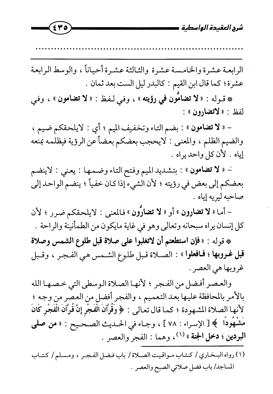 - " لا تضامون ": بتشديد الميم وفتح التاء وضمها: يعني: لا ينضم بعضكم إلى بعض في رؤيته؛ لأن الشيء إذا كان خفيا؛ ينضم الواحد إلى صاحبه ليريه إياه.