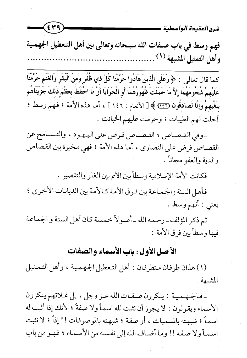 فهم وسط في باب صفات الله سبحانه وتعالى بين أهل التعطيل الجهمية وأهل التمثيل المشبهة