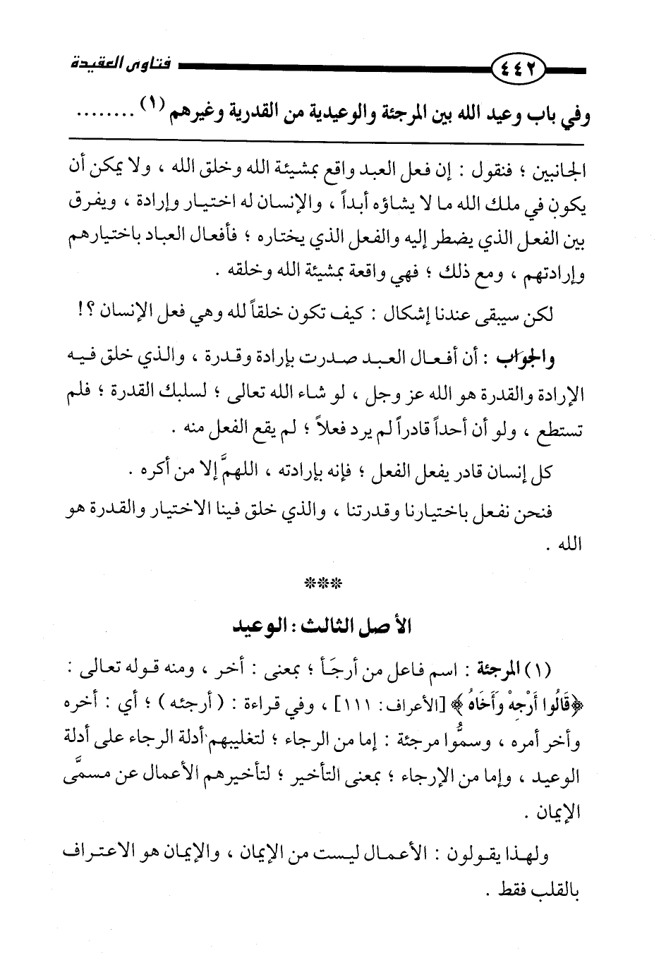 وفي باب وعيد الله بين المرجئة والوعيدية من القدرية وغيرهم