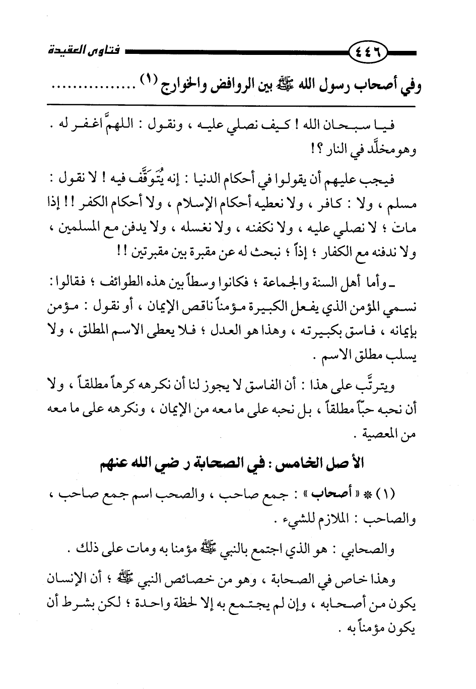 الأصل الخامس: في الصحابة رضي الله عنهم