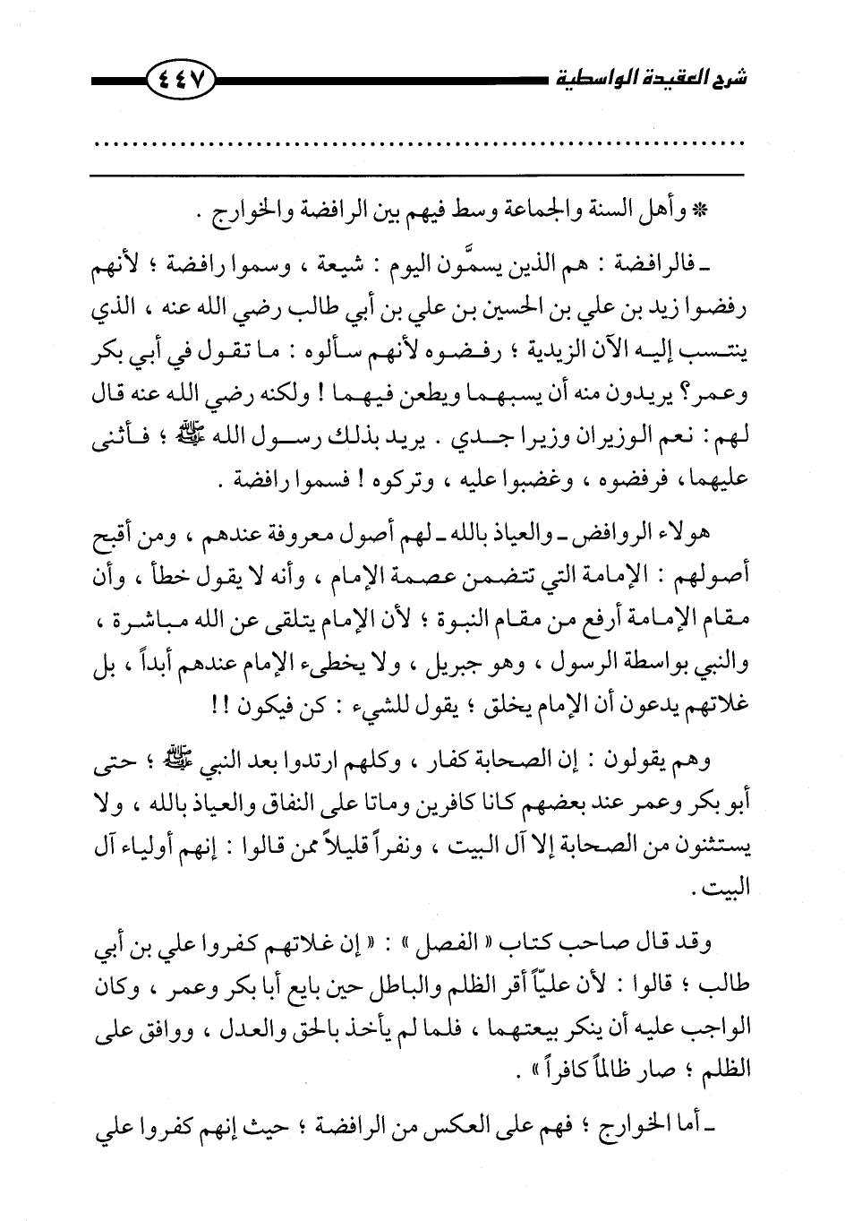 وأهل السنة والجماعة وسط فيهم بين الرافضة والخوارج.