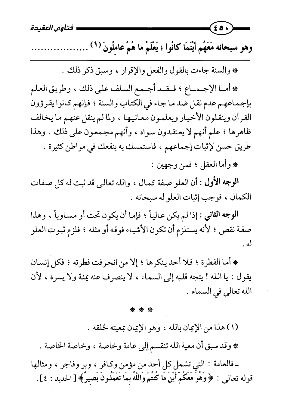 فالعامة: التي تشمل كل أحد من مؤمن وكافر، وبر وفاجر ومثالها قوله تعالى: {وَهُوَ مَعَكُمْ أَيْنَ مَا كُنْتُمْ وَاللَّهُ بِمَا تَعْمَلُونَ بَصِيرٌ} [الحديد: 4]