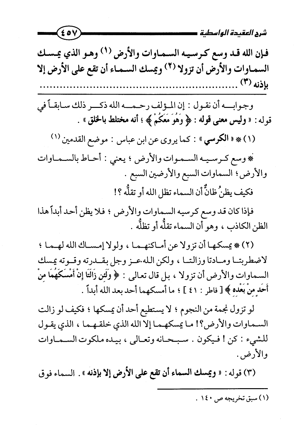 فإن الله قد {وَسِعَ كُرْسِيُّهُ السَّمَاوَاتِ وَالْأَرْضَ} وهو الذي {يُمْسِكُ السَّمَاوَاتِ وَالْأَرْضَ أَنْ تَزُولَا} {وَيُمْسِكُ السَّمَاءَ أَنْ تَقَعَ عَلَى الْأَرْضِ إِلَّا بِإِذْنِهِ}