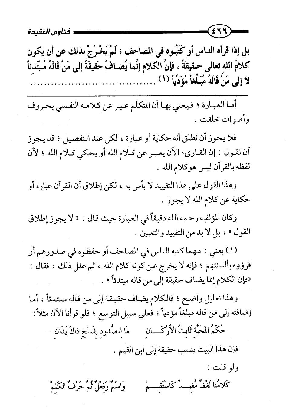 فلا يجوز أن نطلق أنه حكاية أو عبارة، لكن عند التفصيل؛ قد يجوز أن نقول: إن القارئ الآن يعبر عن كلام الله أو يحكي كلام الله؛ لأن لفظه بالقرآن ليس هو كلام الله.
