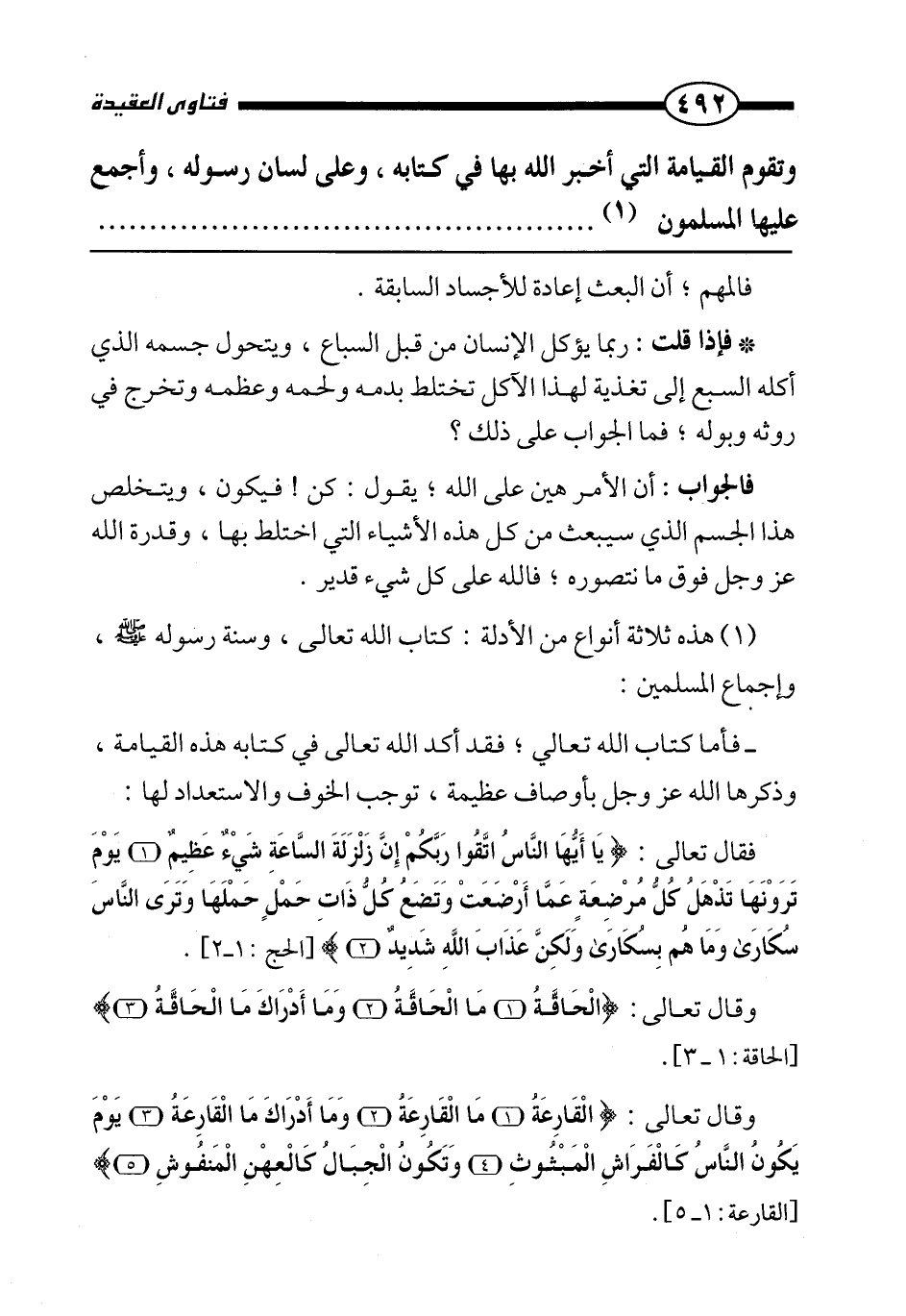 وتقوم القيامة التي أخبر الله بها في كتابه، وعلى لسان رسوله، وأجمع عليها المسلمون