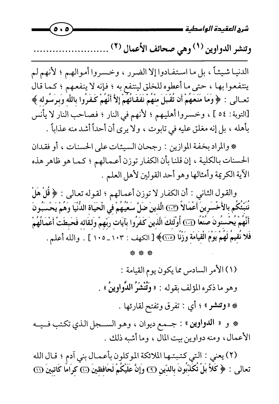 * و" الدواوين ": جمع ديوان، وهو السجل الذي تكتب فيه الأعمال، ومنه دواوين بيت المال، وما أشبه ذلك.