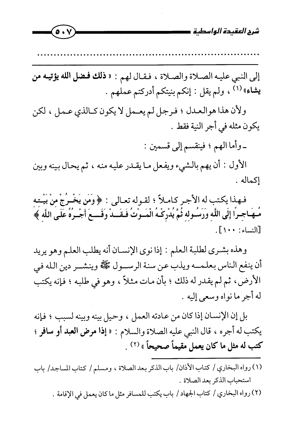 ولأن هذا هو العدل؛ فرجل لم يعمل لا يكون كالذي عمل، لكن يكون مثله في أجر النية فقط.