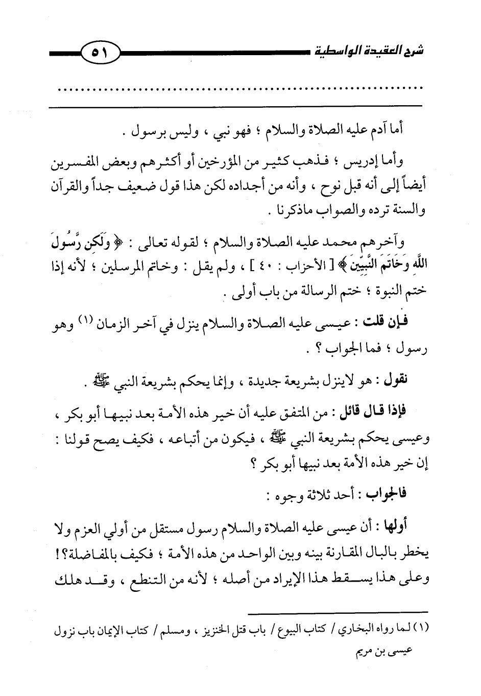 فإن قلت: عيسى عليه الصلاة والسلام ينزل في آخر الزمان (¬1) وهو رسول، فما الجواب؟ .