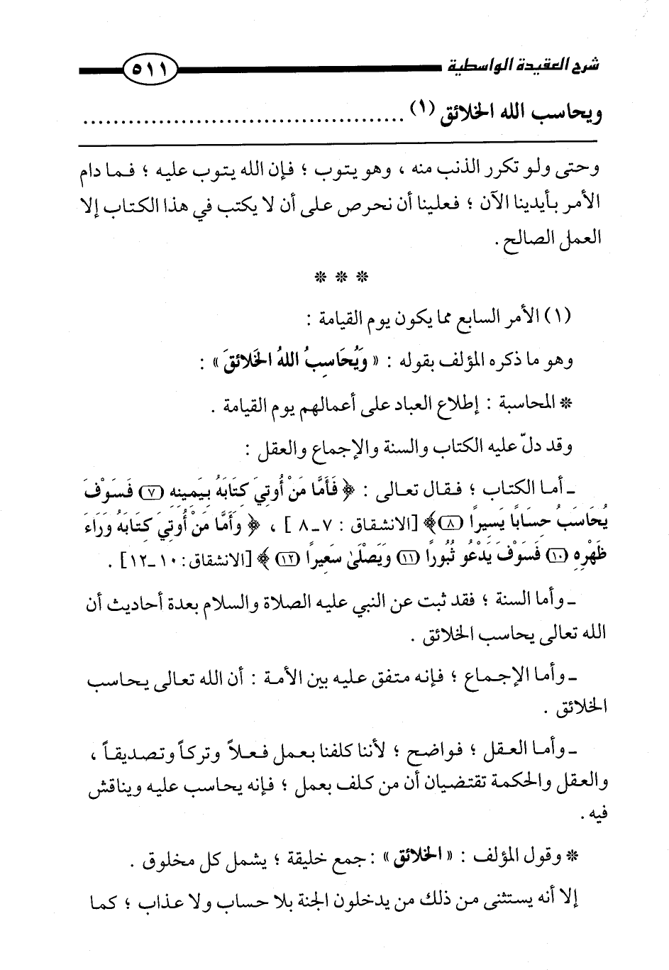 وهو ما ذكره المؤلف بقوله: " ويحاسب الله الخلائق ":