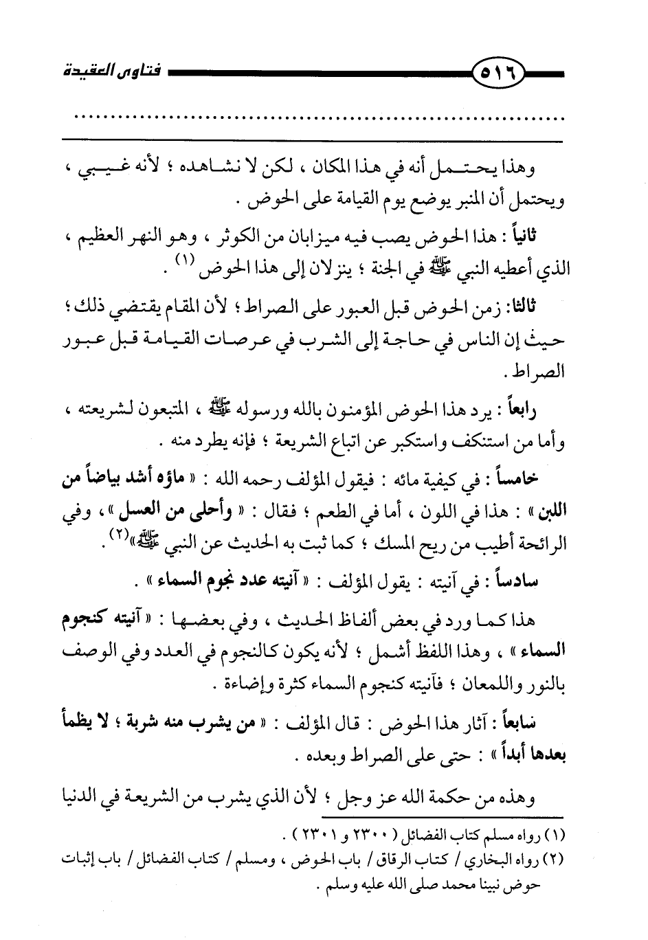 سابعا: آثار هذا الحوض: قال المؤلف: " من يشرب منه شربة؛ لا يظمأ بعدها أبدا ": حتى على الصراط وبعده.
