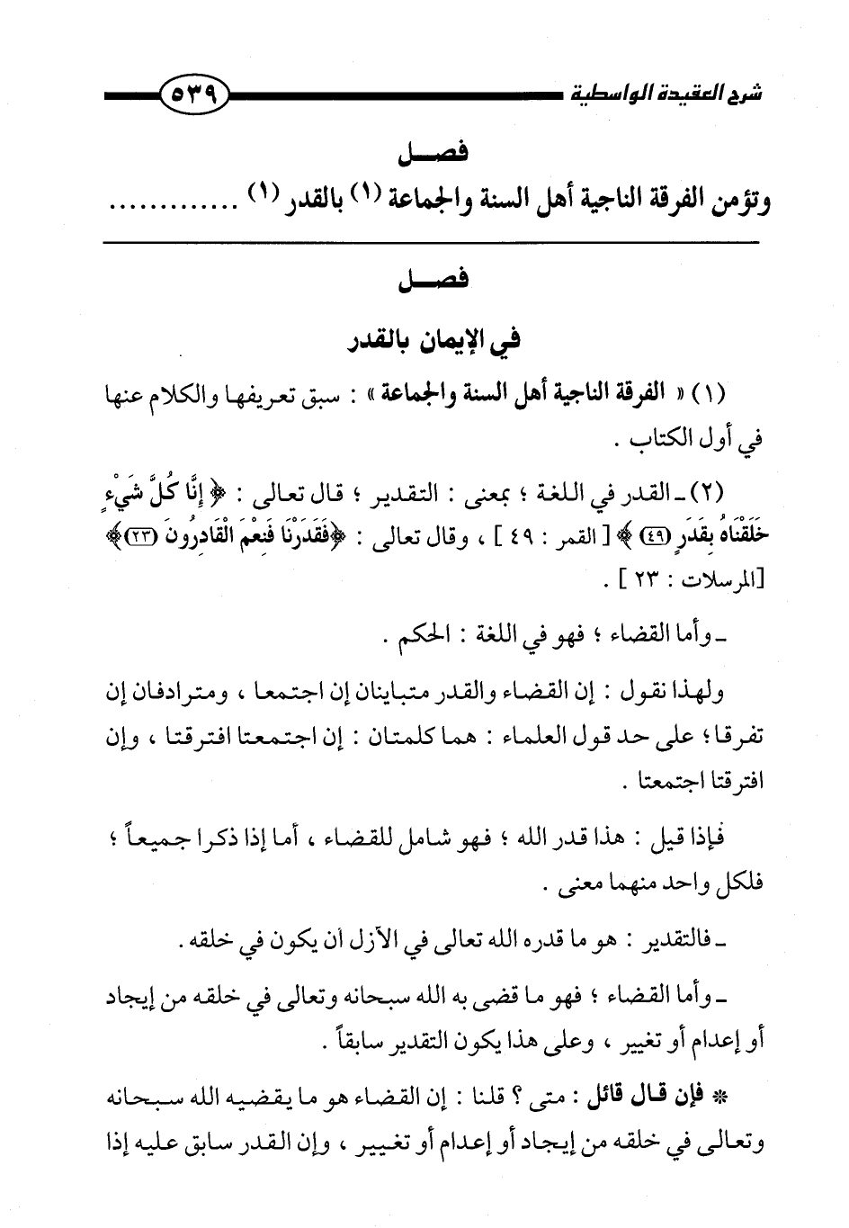 وتؤمن الفرقة الناجية أهل السنة والجماعة بالقدر