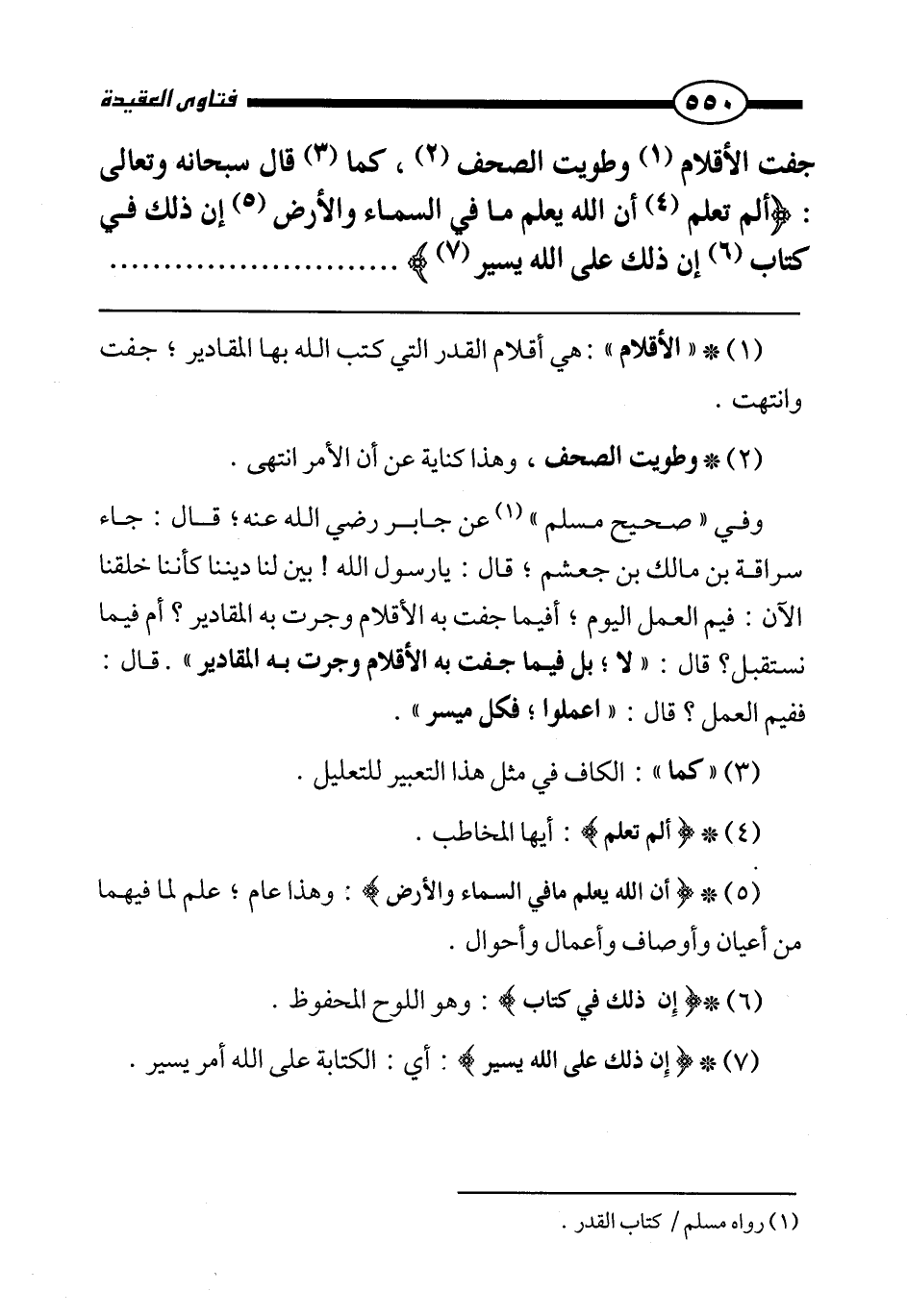 * " الأقلام ": هي أقلام القدر التي كتب الله بها المقادير؛ جفت وانتهت.