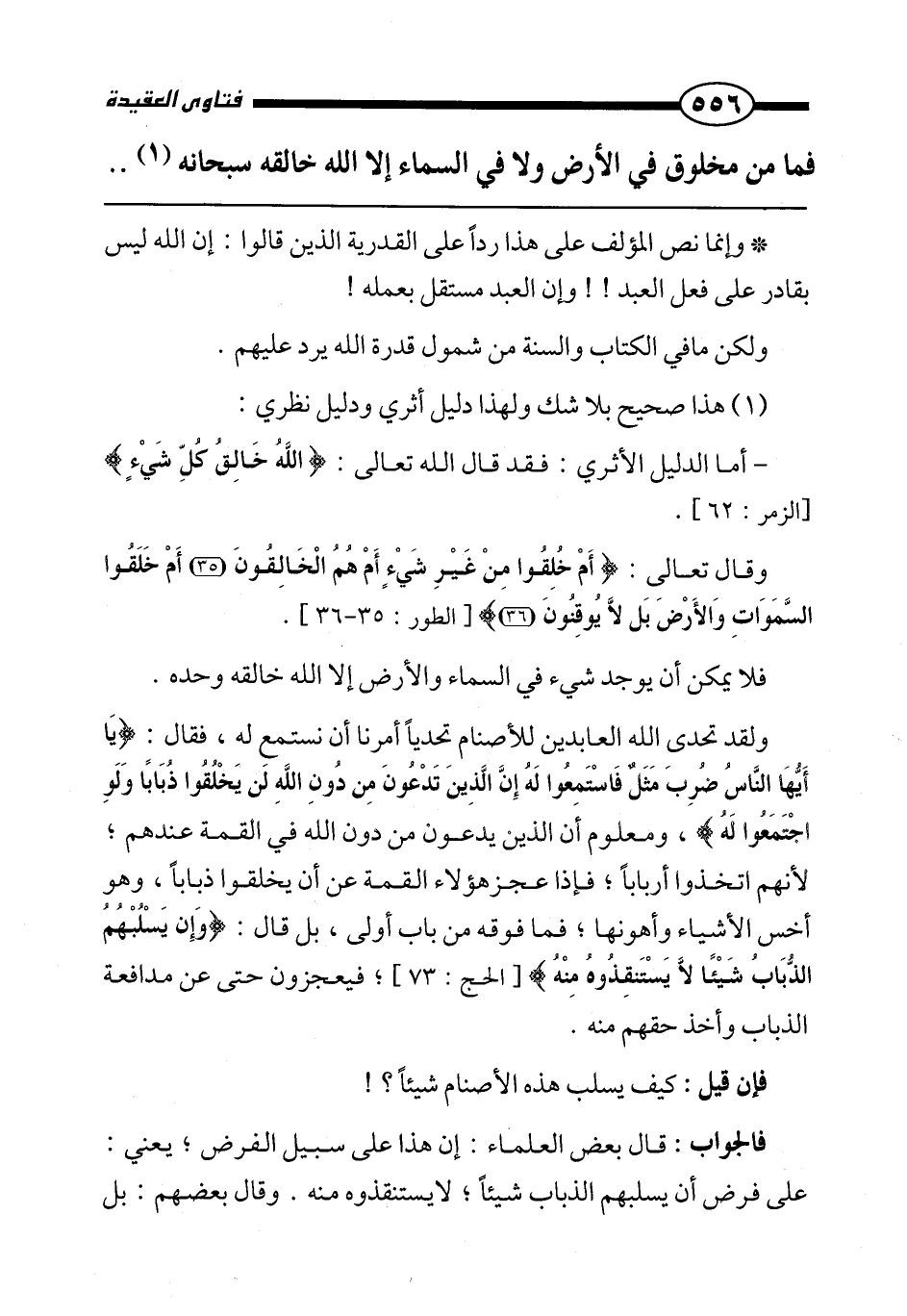 * وإنما نص المؤلف على هذا ردا على القدرية الذين قالوا: إن الله ليس بقادر على فعل العبد!! وإن العبد مستقل بعمله!