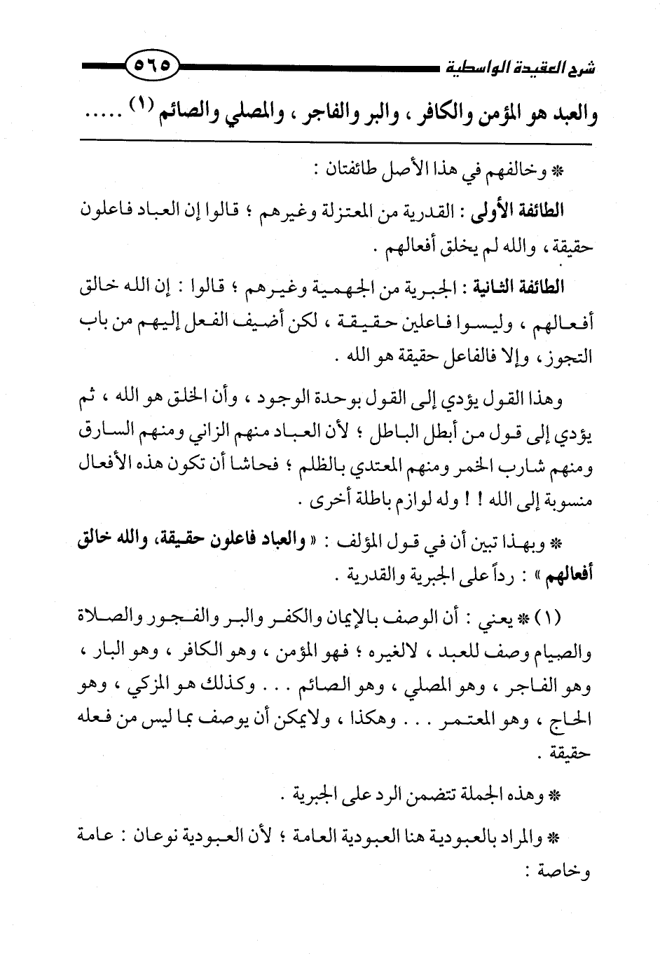 الطائفة الأولى: القدرية من المعتزلة وغيرهم؛ قالوا إن العباد فاعلون حقيقة، والله لم يخلق أفعالهم.