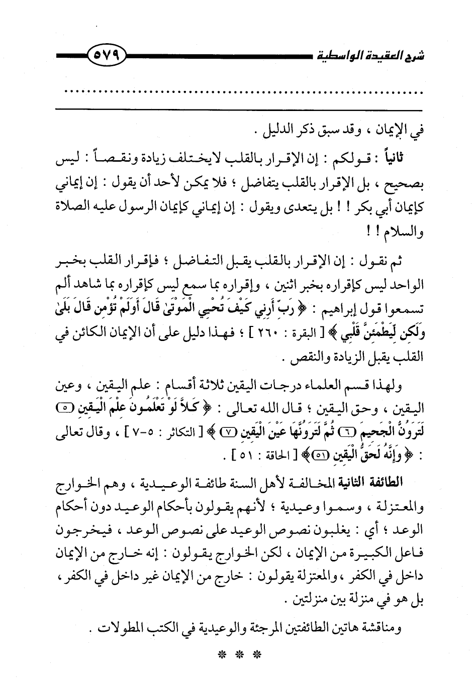 ومناقشة هاتين الطائفتين المرجئة والوعيدية في الكتب المطولات.