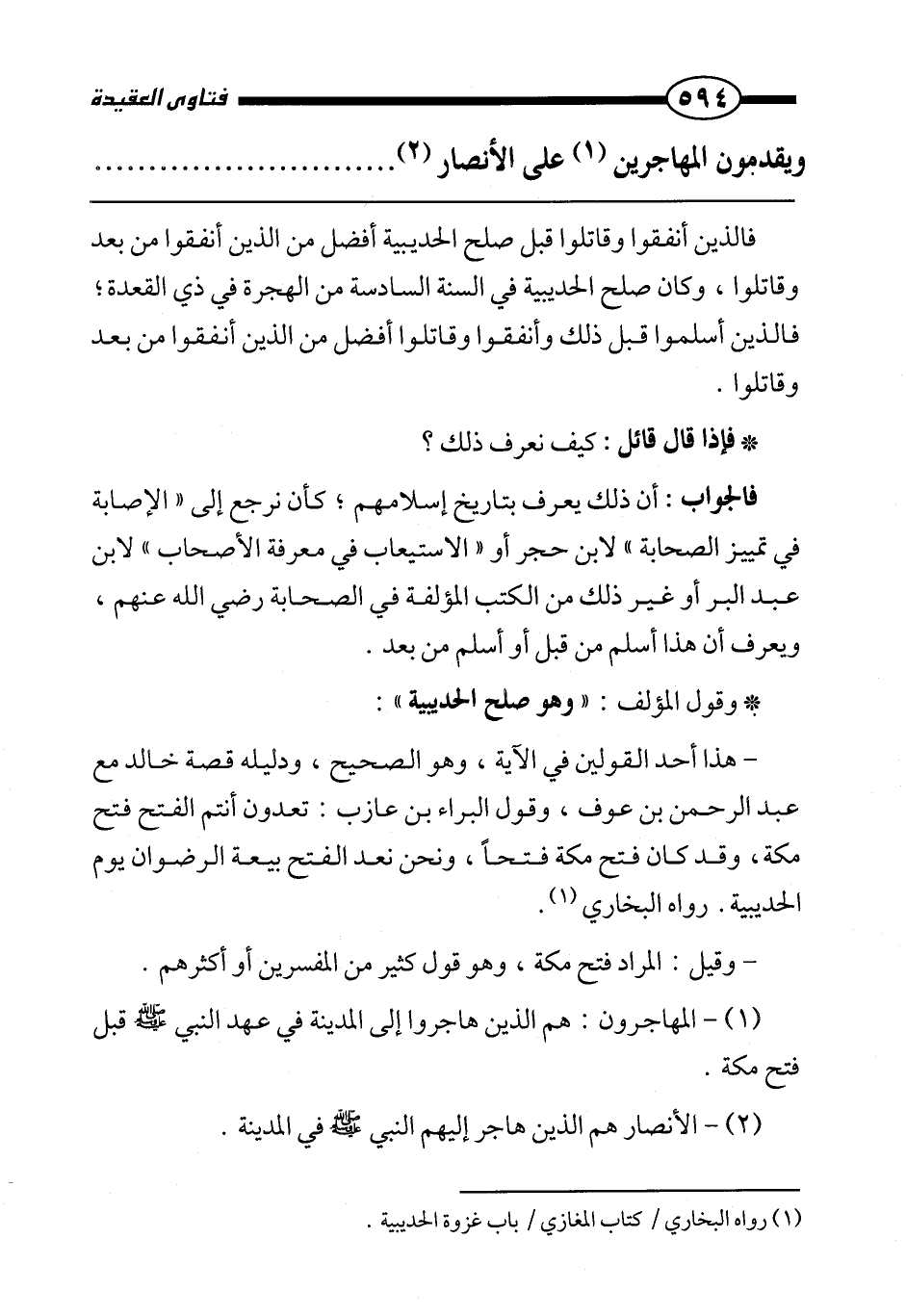 المهاجرون: هم الذين هاجروا إلى المدينة في عهد النبي صَلَّى اللَّهُ عَلَيْهِ وَسَلَّمَ قبل فتح مكة.
