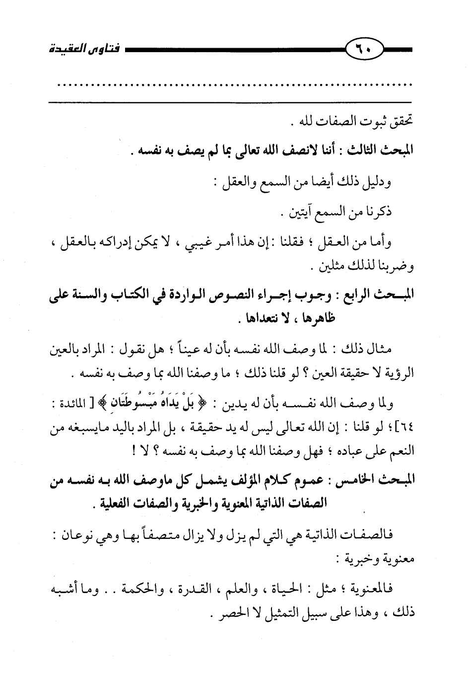 المبحث الخامس: عموم كلام المؤلف يشمل كل ما وصف الله به نفسه من الصفات الذاتية المعنوية والخبرية والصفات الفعلية.