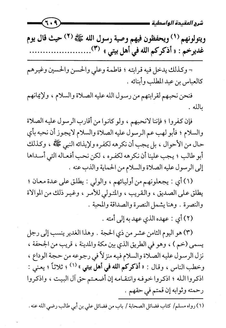 ويتولونهم ويحفظون فيهم وصية رسول الله صَلَّى اللَّهُ عَلَيْهِ وَسَلَّمَ حيث قال يوم غدير خم: " أذكركم الله في أهل بيتي "