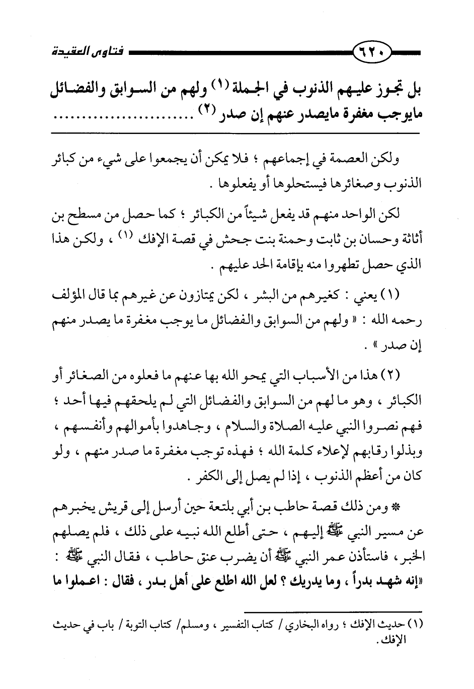 (¬1) حديث الإفك، رواه البخاري/ كتاب التفسير، ومسلم/ كتاب التوبة/ باب في حديث الإفك.