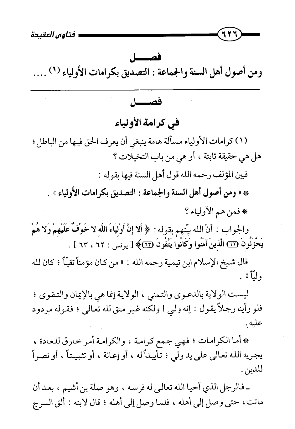 " ومن أصول أهل السنة والجماعة: التصديق بكرامات الأولياء ".