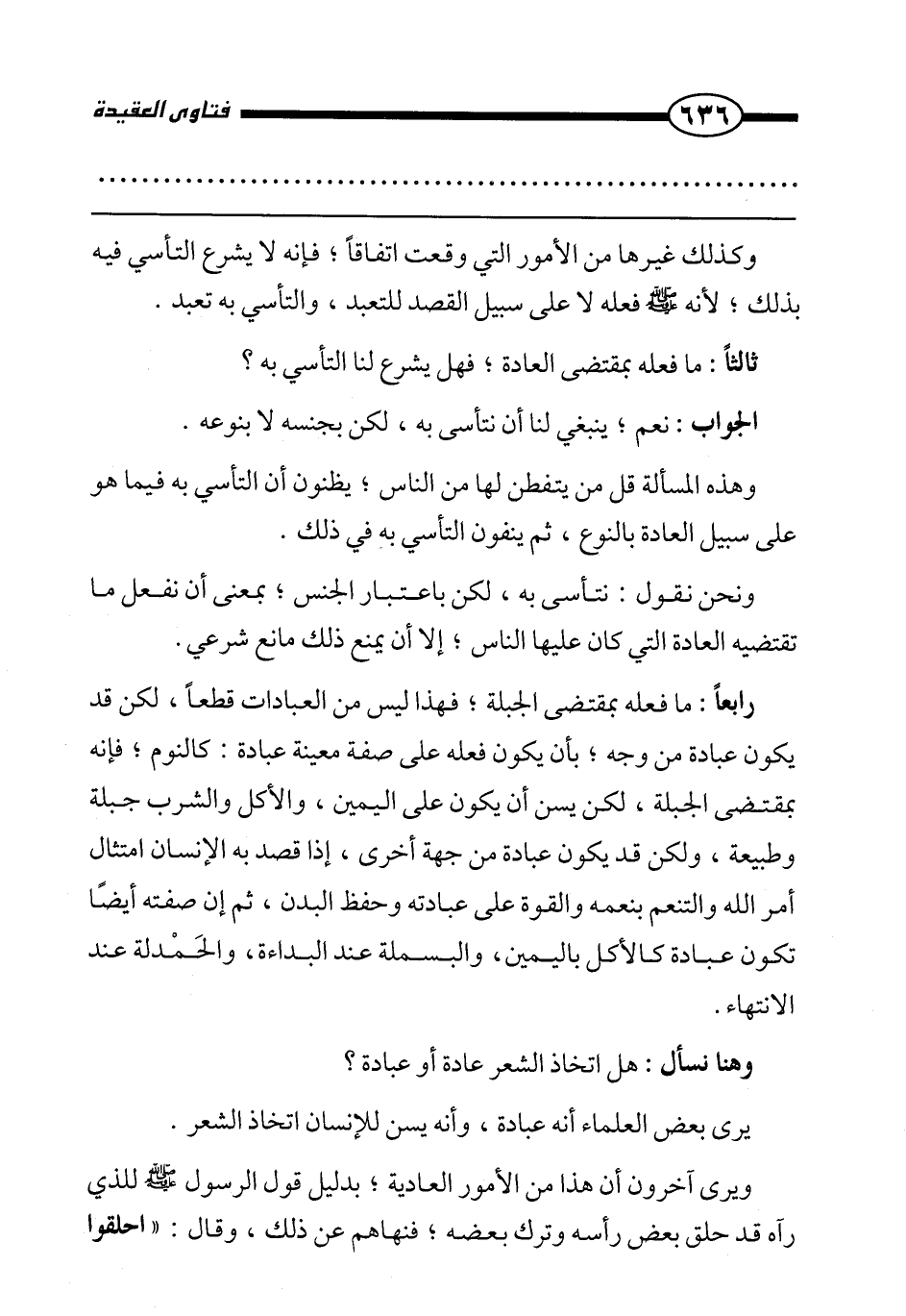 ونحن نقول: نتأسى به، لكن باعتبار الجنس، بمعنى أن نفعل ما تقتضيه العادة التي كان عليها الناس، إلا أن يمنع ذلك مانع شرعي.