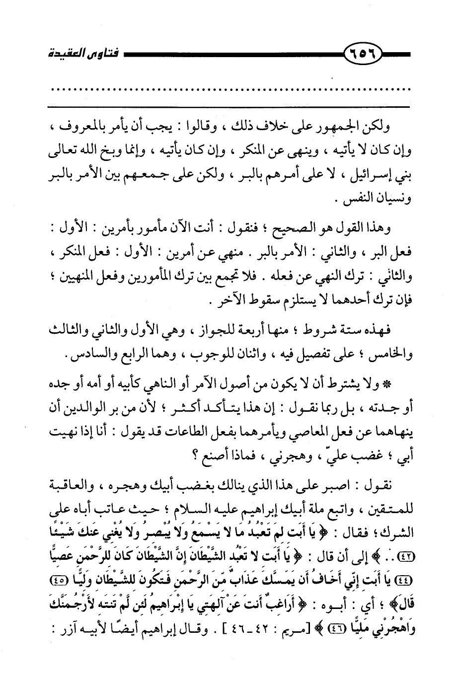 ولا يشترط أن لا يكون من أصول الآمر أو الناهي كأبيه أو أمه أو جده أو جدته، بل ربما نقول: إن هذا يتأكد أكثر، لأن من بر الوالدين أن ينهاهما عن فعل المعاصي ويأمرهما بفعل الطاعات قد يقول: أنا إذا نهيت أبي، غضب علي، وهجرني، فماذا أصنع؟