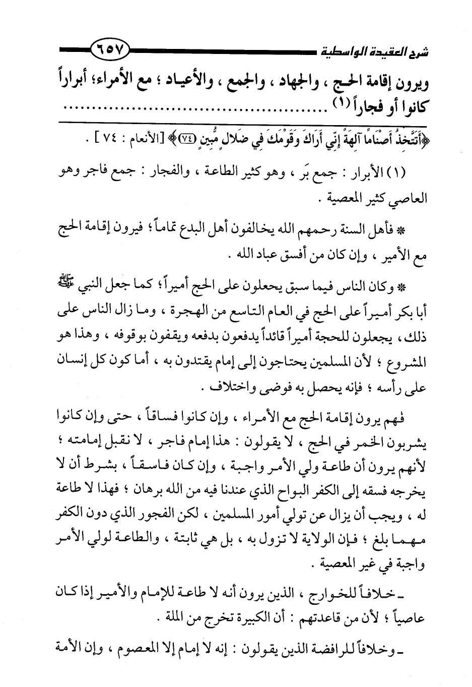 ويرون إقامة الحج، والجهاد، والجمع، والأعياد، مع الأمراء، أبرارا كانوا أو فجارا