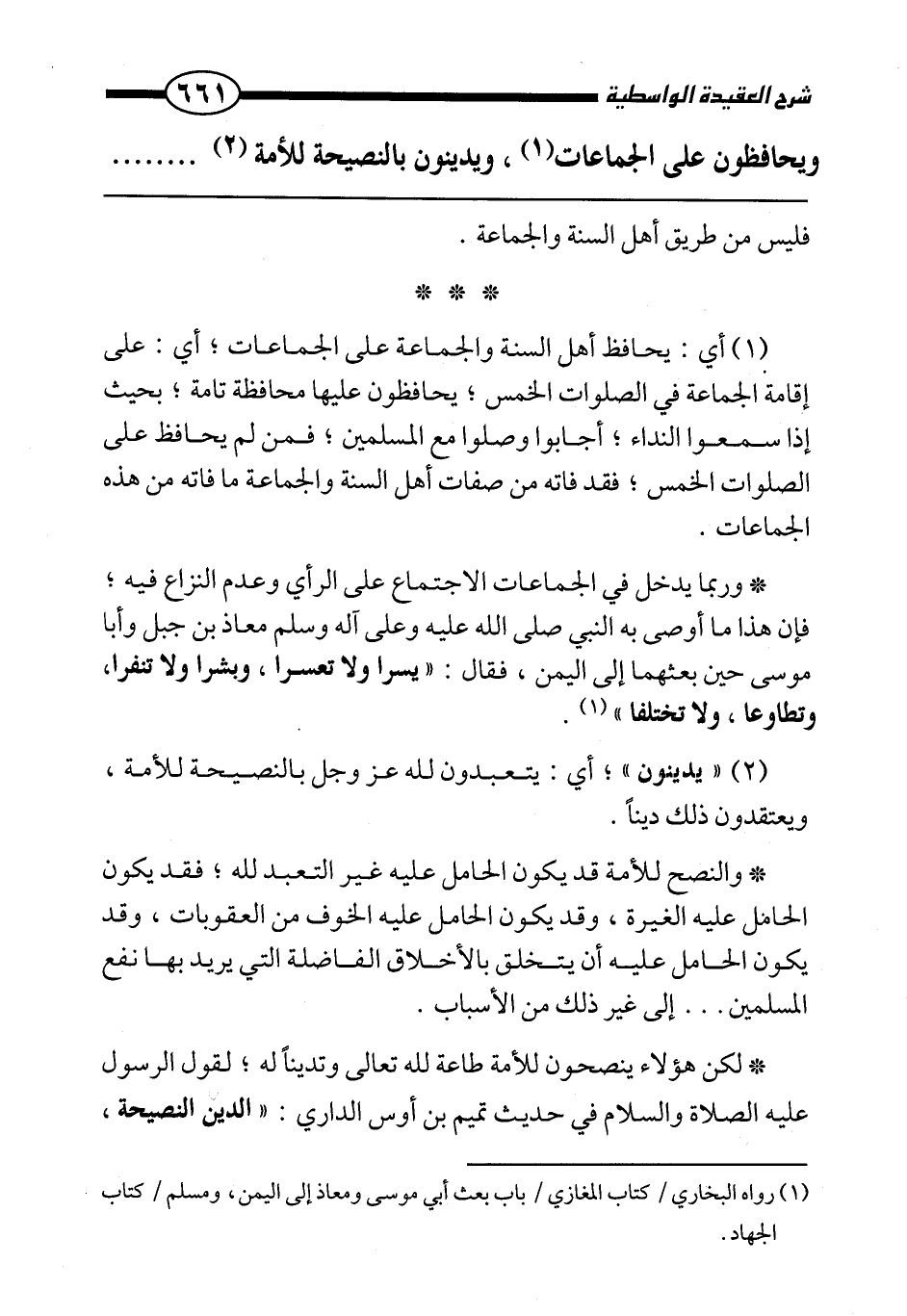 وربما يدخل في الجماعات الاجتماع على الرأي وعدم النزاع فيه، فإن هذا ما أوصى به النبي صلى الله عليه وعلى آله وسلم معاذ بن جبل وأبا موسى حين بعثهما إلى اليمن، فقال: «يسرا ولا تعسرا، وبشرا ولا تنفرا، وتطاوعا، ولا تختلفا» .