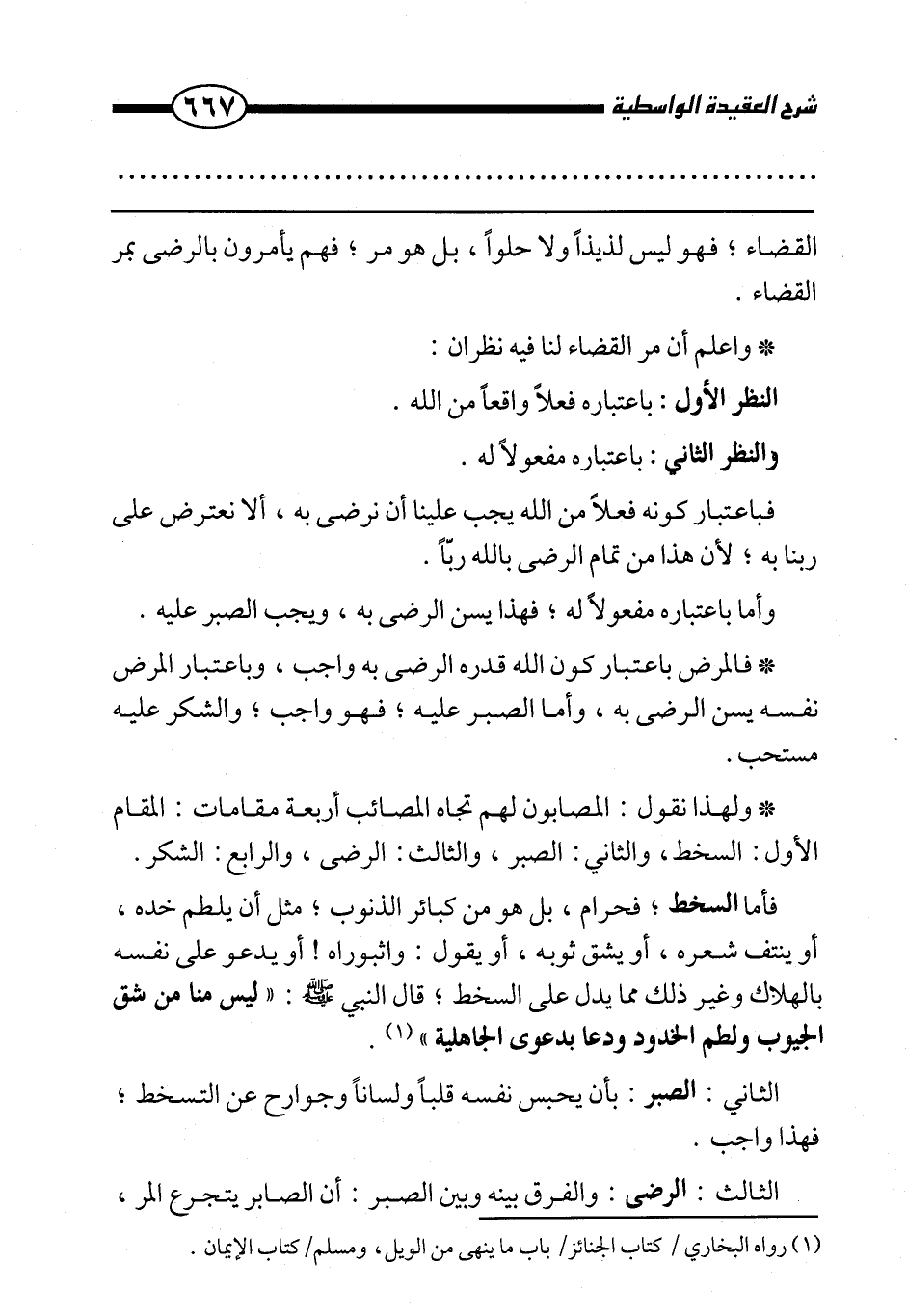 وأما باعتباره مفعولا له، فهذا يسن الرضى به، ويجب الصبر عليه.
