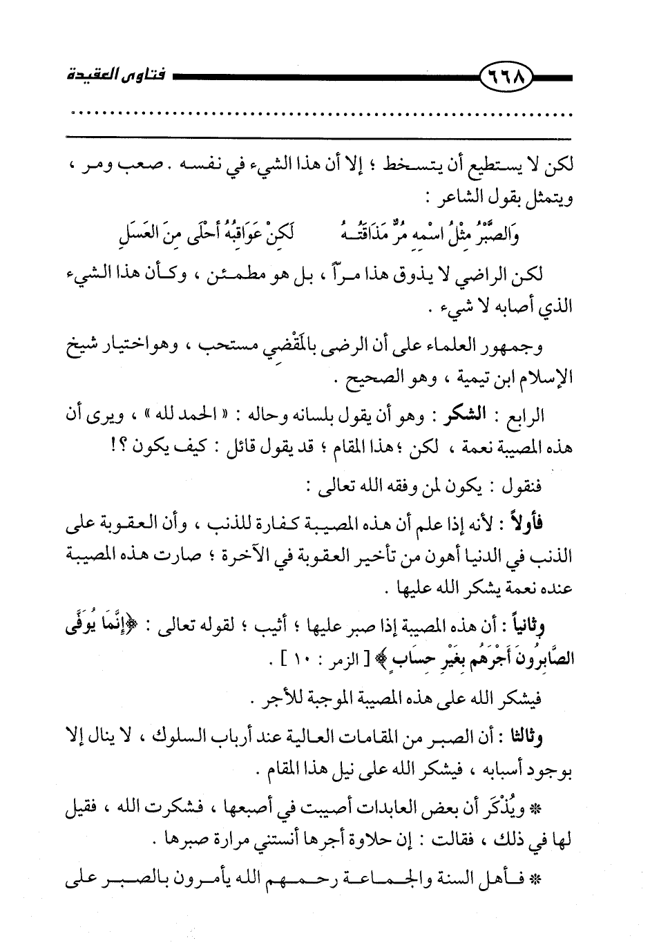 وثالثا: أن الصبر من المقامات العالية عند أرباب السلوك، لا ينال إلا بوجود أسبابه، فيشكر الله على نيل هذا المقام.