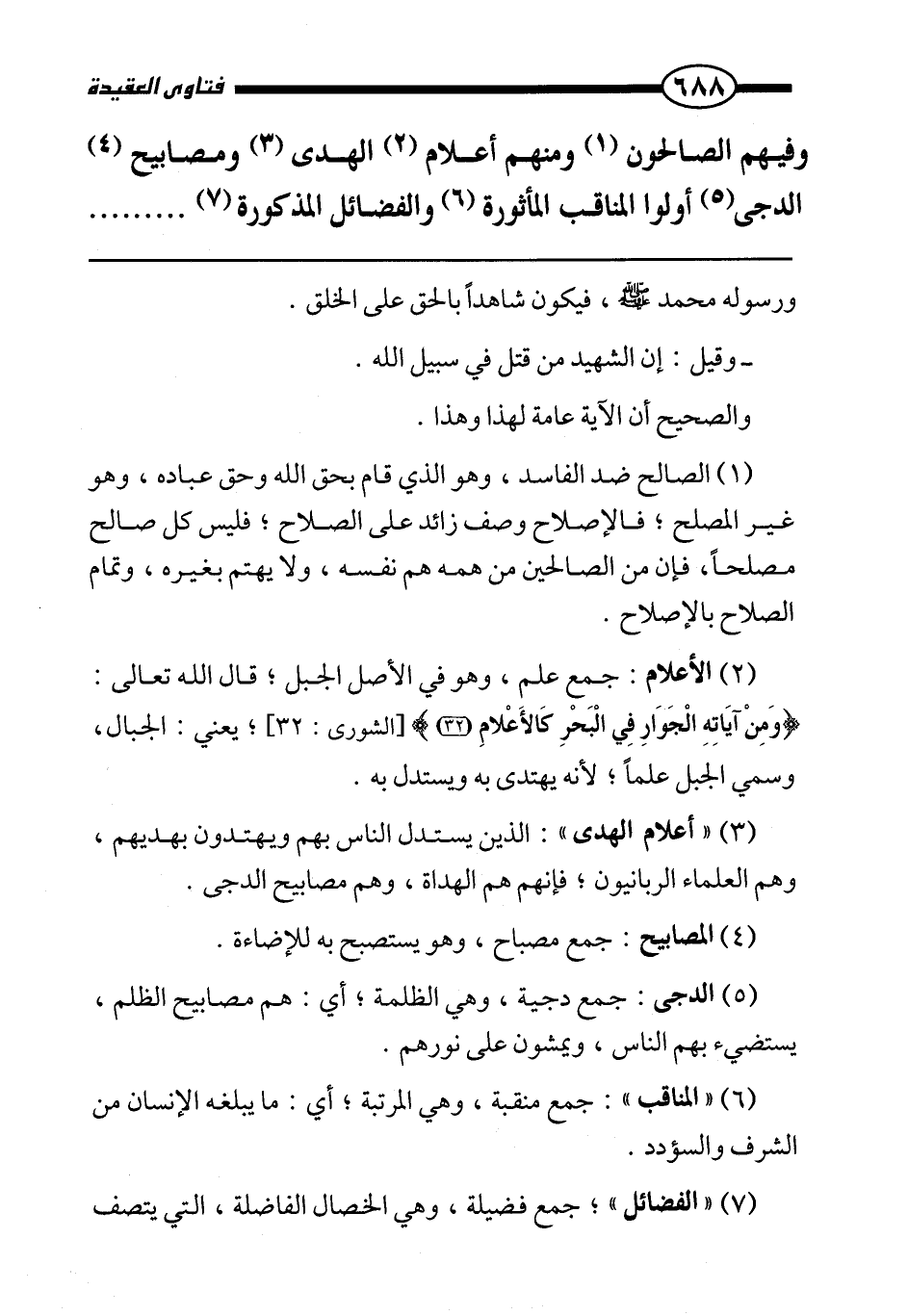 " أعلام الهدى ": الذين يستدل الناس بهم ويهتدون بهديهم، وهم العلماء الربانيون، فإنهم هم الهداة، وهم مصابيح الدجى.