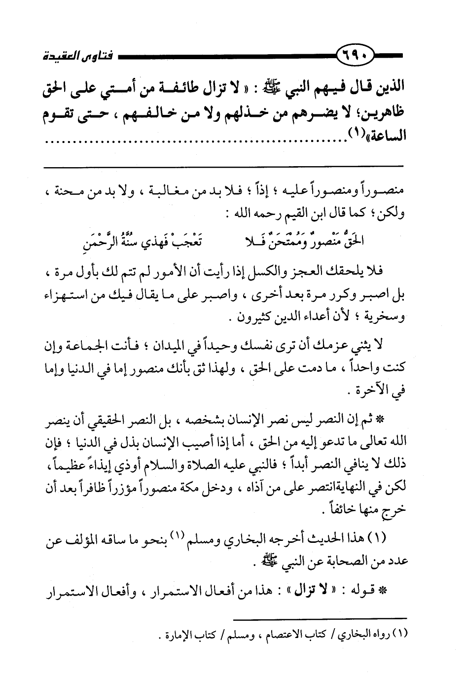منصورا ومنصورا عليه، إذا، فلا بد من مغالبة، ولا بد من محنة، ولكن، كما قال ابن القيم رحمه الله: