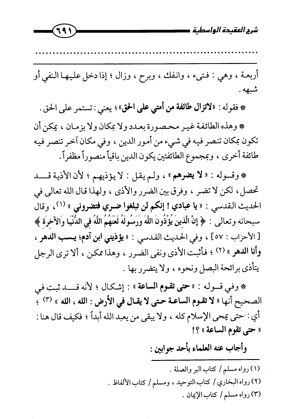 وفي قوله: «حتى تقوم الساعة» : إشكال، لأنه قد ثبت في الصحيح أنها «لا تقوم الساعة حتى لا يقال في الأرض: الله، الله» ، أي: حتى يمحى الإسلام كله، ولا يبقى من يعبد الله أبدا، فكيف قال هنا: " حتى تقوم الساعة "؟!
