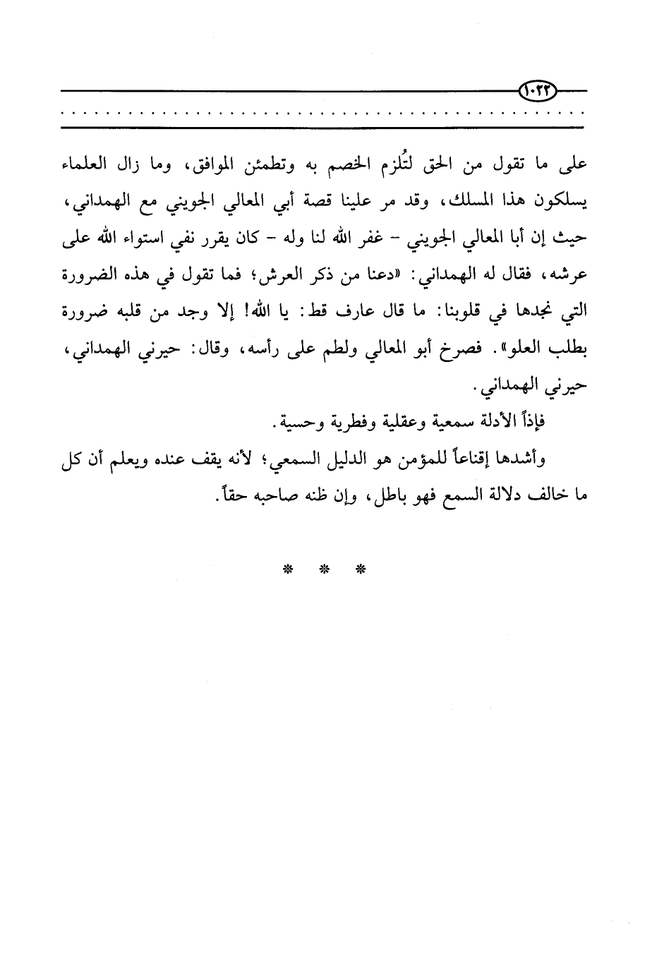 على ما تقول من الحق لتُلزم الخصم به وتطمئن الموافق، وما زال العلماء يسلكون هذا المسلك، وقد مر علينا قصة أبي المعالي الجويني مع الهمداني، حيث إن أبا المعالي الجويني - غفر الله لنا وله - كان يقرر نفي استواء الله على عرشه، فقال الهمداني: _ دعنا من ذكر العرش، فما تقول في هذه الضرورة التي نجدها في قلوبنا: ما قال عارف قط: يا الله! إلا وجد من قلبه ضرورة بطلب العلو) . فصرخ أبو المعالي ولطم على رأسه، وقال: حيرني الهمداني.