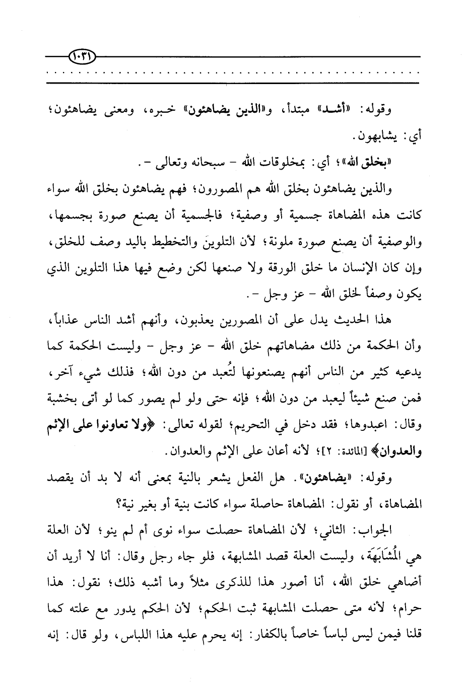 قوله: (يضاهئون) . هل الفعل يشعر بالنية بمعنى أنه لا بد أن يقصد المضاهاة، أو نقول: المضاهاة حاصلة سواء كانت بنية أو بغير نية؟