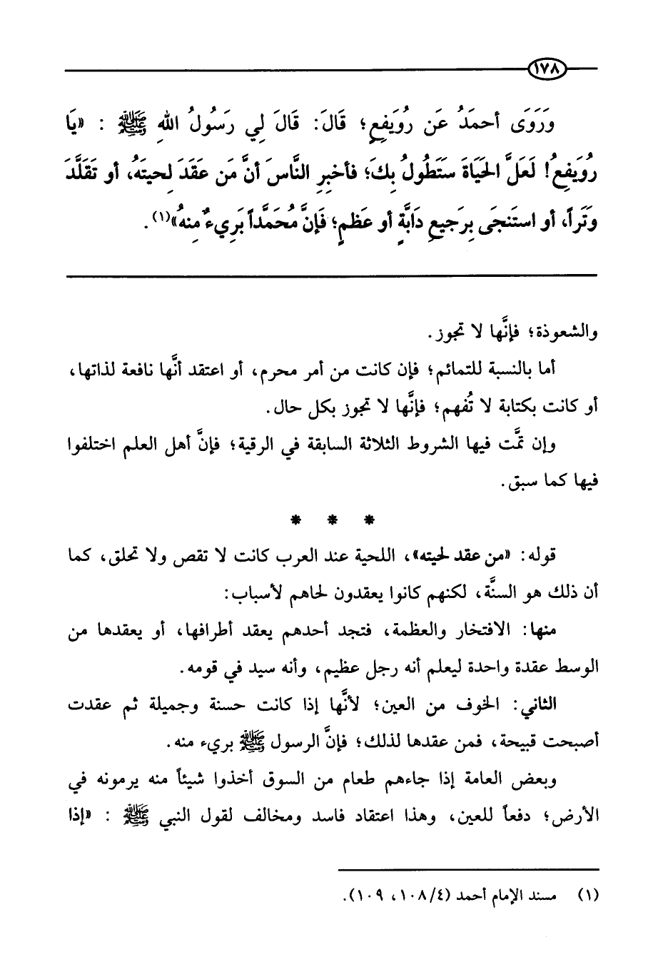 بكسر العين، ووجه المشابهة بين قطع التميمة وعتق الرقبة: أنه إذا قطع التميمة من إنسان؛ فكأنه أعتقه من الشرك، ففكه من النار، ولكن يقطعها بالتي هي أحسن؛ لأن العنف يؤدي إلى المشاحنة والشقاق، إلا إن كان ذا شأن كالأمير، والقاضي، ونحوه ممن له سلطة؛ فله أن يقطعها مباشرة.