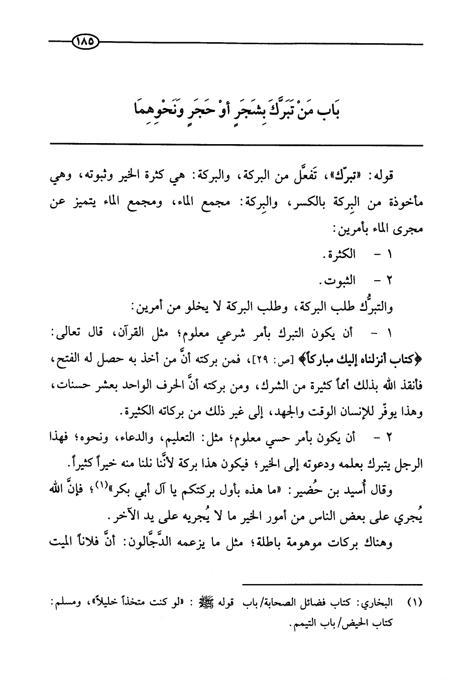 قوله: (ونحوهما) ، أي: من البيوت، والقباب، والحجر؛ حتى حجرة قبر النبي صَلَّى اللَّهُ عَلَيْهِ وَسَلَّمَ؛ فلا يتمسح بها تبركا، لكن لو مسح الحديد لينظر هل هو أملس أو لا؛ فلا بأس، إلا إن خشي أن يقتدى به؛ فلا يمسحه.